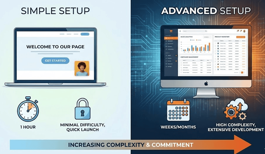 The complexity of your site directly affects how long the setup will take. Simple websites like landing pages or portfolios are quick to launch, around 1-3 days. However, for feature-rich sites with e-commerce or dynamic CMS, expect 1-2 weeks or longer due to additional integrations and custom logic.