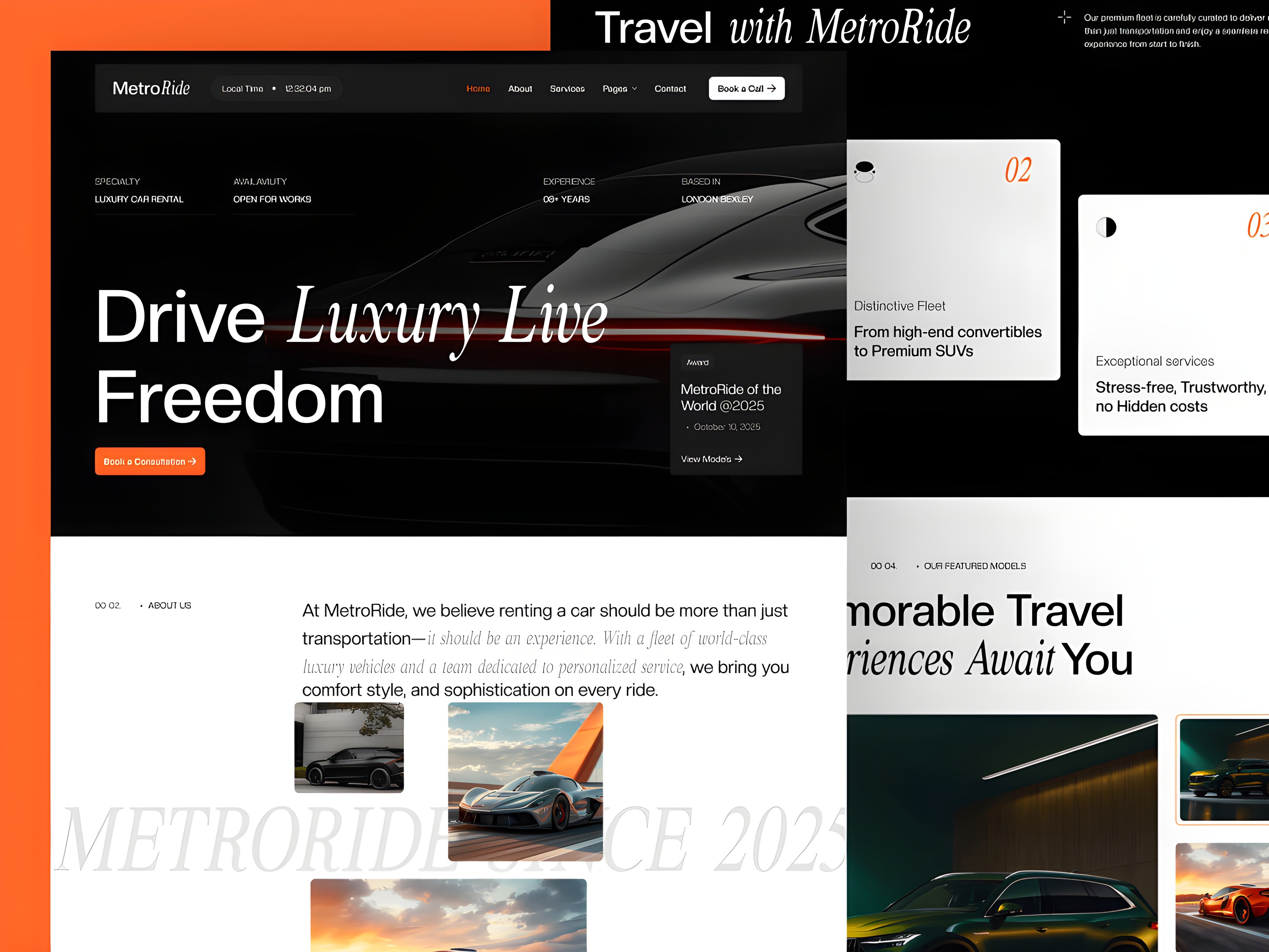 If you're launching a premium service or luxury business — Metroride is purpose-built for the experience economy. The lifestyle photography, editorial typography, and aspirational hero structure create the visual credibility that service startups need to charge premium prices from the start.